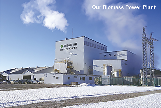 We operate a woody biomass power plant in Shiranuka-cho, Hokkaido, Japan. The plant generates approximately 6.2 MW of electricity by burning wood chips produced from forest thinning as its primary fuel.