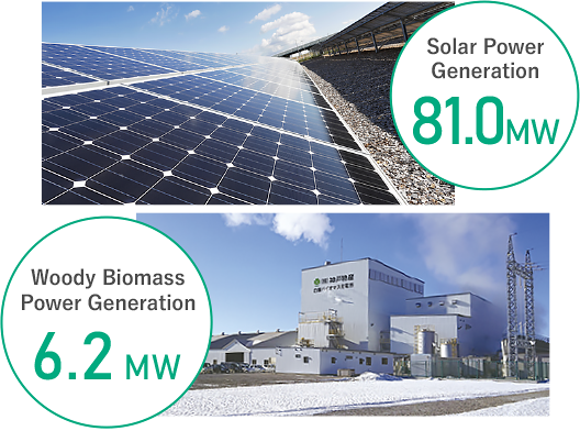 We operate solar power plants and a woody biomass power plant that uses timber from forest thinning.
